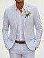 Herr Strandbröllop Linnekostymer Beige Mode Formell Solid färg Standardpassform 3 delar set Singelknäppt Två knappar