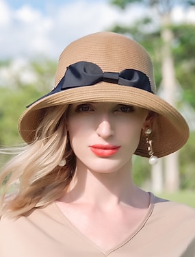 hattar Polyester Halmhatt Solhatt Ledigt Helgdag Enkel Med Rosett Hårbonad Huvudbonader
