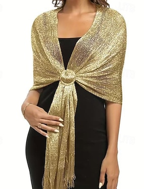 gnistrande metalliska sjalar och omslag med spänne, för aftonklänningar fest bröllop brud brudtärna
