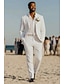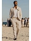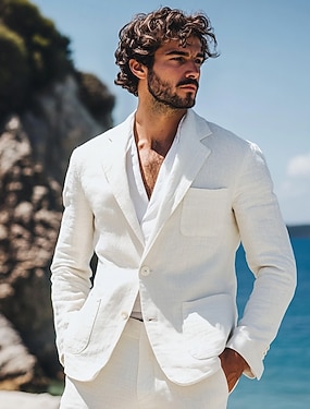 Herr Linnekostymer Strandbröllop Vit Vår, Höst, Vinter, Sommar Kostym Lättvikt Ledigt Solid färg Standardpassform 2 delar set Singelknäppt 1 Knapp