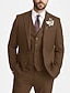 Herr Smokingar Affärsdräkter Ledigt Fest Brun Höst Kostym Hakslag Formell Solid färg Smal passform 3 delar set Singelknäppt Två knappar