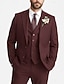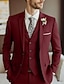 Herr Smokingar Bröllopsdräkter Bröllop Vinröd Höst Kostym Hakslag Formell Solid färg Smal passform 3 delar set