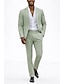 Herr Smokingar Festdräkter Strandbröllop Vårbröllop Ljusgrön Vår & sommar Kostym Spetsslag Mode Formell Solid färg Standardpassform 2 delar set Singelknäppt 1 Knapp