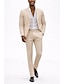 Herr Linnekostymer Strandbröllop Företag Vit Beige Sommar Kostym Hakslag Mode Formell Solid färg Skräddarsydd passform 2 delar set Singelknäppt 1 Knapp