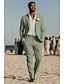 Herr Linnekostymer Strandbröllop Strand Ljusblå ärtgrön Vår, Höst, Vinter, Sommar Kostym Trubbig Solid färg Skräddarsydd passform 2 delar set Singelknäppt 1 Knapp
