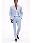 Herr Kostymer Strandbröllop Ledigt Ljusblå Sommar Kostym Hakslag Formell Solid färg Standardpassform 2 delar set Singelknäppt Två knappar