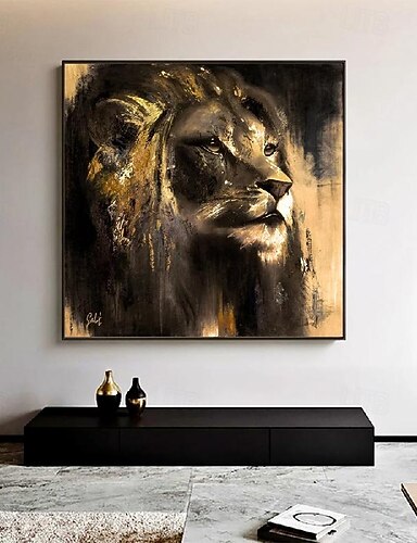 handmålad färgglad djurduk lejonmålning väggkonst konstnärlig djurdekor lejonmålning handgjord lejon oljemålning för vardagsrum konstverk