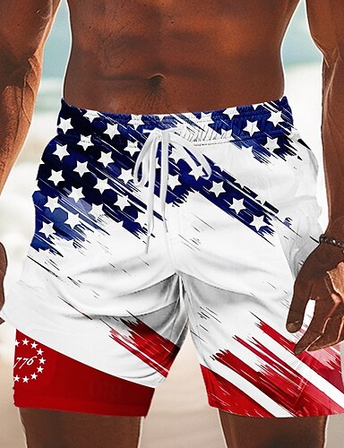 Självständighetsdagen Herr USA: s flagga Patriotisk Fjärde juli Fodrade shorts 2 i 1 simshorts Badshorts Medium Midja Helgdag Sidfickor Med kompressionsfoder Elastisk dragsko i midjan Designer Kläder