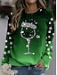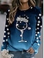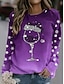 Jul Dam T-shirt Grafisk Djur Katt Mode Ledigt Långärmad Rund hals Vanliga toppar Dagligen Helgen Mönster Rubinrött Sommar Vår Höst Vinter