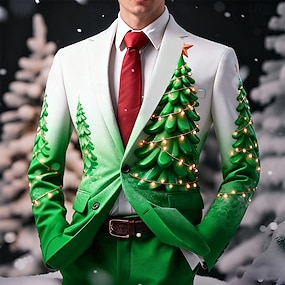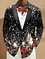 Herr Kavaj Kappa Jul Ledigt Ledigt vardag Höst vinter 100% Polyester Julgran Julklocka 3D-utskrift Knappar Håller värmen Bekväm Enkelknäppt Blazer Blå Purpur Grön