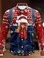 jul herr jul dräkt tryckta skjortor skjortor jultomten grafiska tryck fula turndown svart och rött vin vit+röd röd/vit röd 3d-tryck gata långärmade kläder med knapptryck