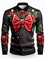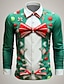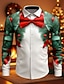 Jul Herr Julkostym Fuskkrage och kostymdesign Smokingskjorta med slips och tryck Skjorta Knapp upp skjorta Långärmad Rolig Utomhus Helgdag Vår Höst Nedvikt 3D-utskrift krage skjortor Vit 1 Vit Grön