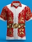 Jul Herr Julkostym Skjorta Knapp upp skjorta Långärmad Ledigt Festkvällskläder Dagligen Festival Höst Vinter Vår & sommar Tröjkrage Knappen uppåt 3D-utskrift Svart Rubinrött Blå Grön
