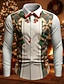 jul mäns roliga jul 3d dragkedja polo bokstav casual zip golf långärmad utomhus casual daglig streetwear höst & vinter 3d print zip svart vin blå mikroelastisk polyester