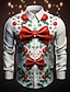 Jul Herr Julkostym Fuskkrage och kostymdesign Smokingskjorta med slips och tryck Skjorta Knapp upp skjorta Långärmad Rolig Utomhus Helgdag Vår Höst Nedvikt 3D-utskrift krage skjortor Vit 1 Vit