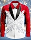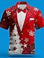 Jul Herr Snöflinga Julkostym Fuskkrage och kostymdesign Skjorta Knapp upp skjorta Långärmad Rolig Utomhus Helgdag Vår Höst Nedvikt 3D-utskrift krage skjortor Rubinrött