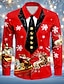 Jul Herr Tupp Juldjur Julkostym Skjorta Knapp upp skjorta Långärmad Rolig Utomhus Helgdag Vår Höst Nedvikt 3D-utskrift krage skjortor Rubinrött