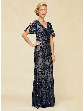 Dam Maxiklänning A linjeklänning Elegant Formell Fjärilsärmar Bröllopsgäst Cocktailfest Normal Slät Kortärmad V-hals Mörkblå Sommar