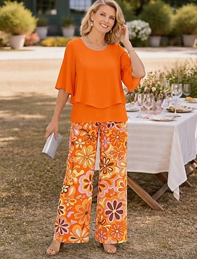 Dam Klänning Set Skiftklänning Sommarklänning Elegant Blommig Grafisk Multi lager Mönster Midiklänning 3/4 ärm Rund hals Dagligen Semester Blå Orange Grön Sommar Vår Normal