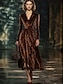 Dam Brun Vår Höst Vinter Midiklänning Sheath Dress Plisserad klänning Formell Dagligen Semester Bröllop Normal Leopard V-hals