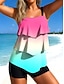 Damernas tankini 2-delad baddräkt färgblock hög midja volang lager rygglös för semestern på stranden ombre grafisk U-hals ärmlös baddräkt