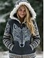 Dam Zip Up hoodies Grafisk Djur Västra Etnisk Ledigt Långärmad Huva Vanliga toppar Ledigt Gata Purpur Ljusgrå Mörkgrå Höst Vinter