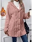 Dam Sherpajacka Vardaglig jacka Bekväm Andningsfunktion Ficka Knappar Ledigt Slät Semester Gata Ledigt Dagliga kläder Öppen front Normal Huva Normal Långärmad Ytterkläder Svart Vit Rodnande Rosa Vår