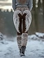 Dam Damasker Semester Vintage Etnisk Stil Fullängd Hög midjaPantsJul Grafisk Snöflinga Jul 3D-utskrift Snabb tork Mateial som andas Mjuk Elastisk Formell Utomhus Semester Svart och vit Svart 1