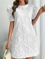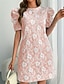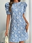 Dam Mini klänning Klänning med tryck Vintage Puffärm Dagligen Utomhus Utekväll Normal Blommig Kortärmad Rund hals Blå Vit Rodnande Rosa Sommar Vår