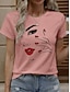 Jul kvinnor T-shirt grafisk Claus vintage stilren klassisk lång ärm crew neck v-hals vanliga toppar dagliga knappar tryck asymmetrisk svart röd blå grön vår höst vinter