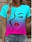 Dam T-shirt Summer Tops Grafisk Färggradient Klassisk Ledigt Kortärmad Rund hals Vanliga toppar Dagligen Helgen Mönster Blå Vit Rodnande Rosa Purpur Sommar