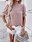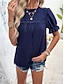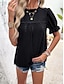 Dam T-shirt med ögonbroderi Ensfärgat Mode Ledigt Kortärmad Puffärm Hög hals Vanliga toppar Dagligen Utekväll Semesterkläder Rynkad Volang Svart Dammig ros Marinblå Sommar Vår Höst