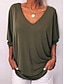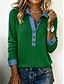 Dam Blus Ensfärgat Stylish Ledigt Långärmad V-hals Vanliga toppar Dagligen Knappar Blå Svart Vit Vin Armégrön Sommar Vår Höst