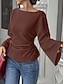 Dam T-shirt Ensfärgat Stylish Ledigt Långärmad Klockärmar Båthals Vanliga toppar Dagligen Utekväll Helgen Tunika Svart Vit Brun Vår Höst