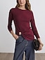 Dam Blus Ensfärgat Stylish Grundläggande Ledigt Långärmad Rund hals Vanliga toppar Dagligen Svart Vit Rodnande Rosa Armégrön Rubinrött Sommar Vår