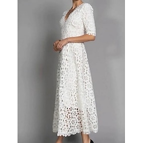 Dam Midiklänning Vit klänning Spetsklänning Vardagsklänning Mode Modern Utomhus Semester Utekväll Normal Slät Kortärmad V-hals Vit Sommar Vår