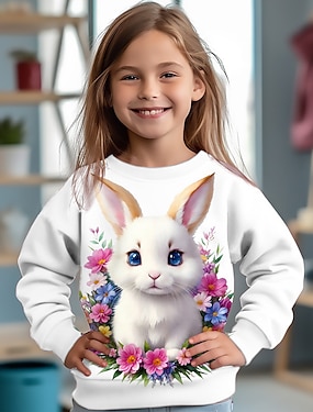 Påsk Flickor 3D Grafisk Tecknat Kanin T-shirt Kortärmad 3D-tryck Sommar Vår Aktiv Mode söt stil Barn 3-12 år Utomhus Ledigt Dagligen Normal
