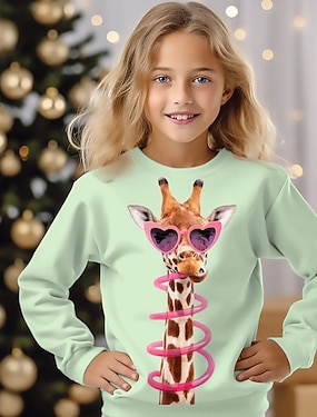 Flickor 3D Grafisk Djur Giraff T-shirt Långärmad 3D-tryck Sommar Höst Aktiv Mode söt stil Barn 3-12 år Utomhus Ledigt Dagligen Normal