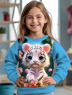 Flickor 3D Grafisk Tecknat Katt Tröja Långärmad 3D-tryck Sommar Höst Mode Streetwear Förtjusande Barn 3-12 år Utomhus Ledigt Dagligen Normal