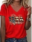Amerikanska självständighetsdagen Dam T-shirt Mönster Grafisk Flagga Vintage Stylish Klassisk Kortärmad V-hals Vanliga toppar Dagligen Svart Vit Rubinrött Marinblå Sommar Vår