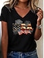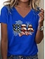 Amerikanska självständighetsdagen Dam T-shirt Mönster Grafisk Flagga Vintage Stylish Klassisk Kortärmad V-hals Vanliga toppar Dagligen Blå Svart Vit Rubinrött Sommar Vår