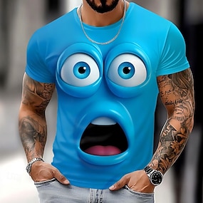 Herr 3D Roliga emotikoner T-shirt Kortärmad T-shirt 3D-tryck Rund hals Skjorta drivna Designer Rolig Fest Gata Ledigt Blå Purpur Grön Sommar Vår Alla årstider Kläder S M L XL XXL XXXL