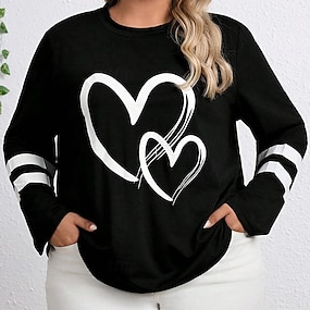 Valentin Dam Hjärta T-shirt Avslappnad Hjärta Regula Tops Dagstryck Regulär Passform Dagslyser Rosa Vår Höst Förvår