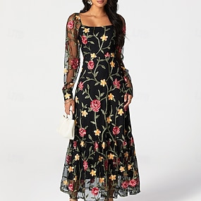 Dam Maxiklänning Svart klänning A linjeklänning Elegant Stylish Puffärm Semester Dagligen Lös passning Blommig Kortärmad Rund hals Svart Sommar