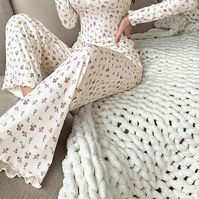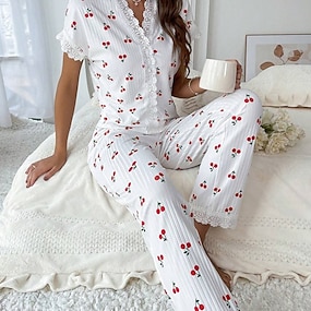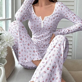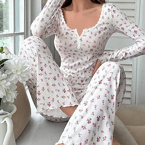 Dam Pyjamas set Ledigt Komfort Comfrt Hjärta T-shirt Byxa Hem Långärmad Rund hals Rodnande Rosa Vår Höst Vinter
