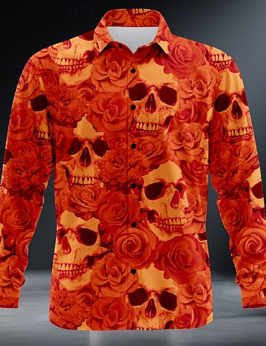Herrskjorta Kostymer Skjorta Knapp Upp Skjorta Lång Ärma Mörk Punk Gotisk Stil Utomhus Semester Sommar Vår Nedvik 3D Tryck Kragade Skjortor Orange Röd Lila Orange