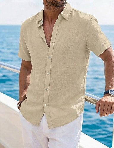 Herr Skjorta Linneskjorta Sommarskjorta Standkläder Slät Semester Ledigt Vit Rodnande Rosa Blå Kaki Kortärmad Kavajslag Sommar Vår & sommar Kläder