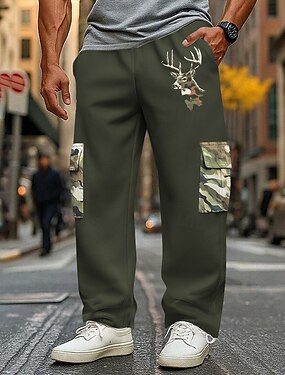 Herr Ren Kamuflasje Cargo träningsbyxor Joggare Casual byxor Medium Midja Ledigt Utomhus Sport Jakt Elastisk dragsko i midjan Öppen botten Taktiska byxor med fickor Vår Höst 3D-tryck Armégrön