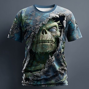 Halloween Herr Dödskalle 3D T-shirt Kortärmad T-shirt 3D-tryck Rund hals Skjorta drivna Designer Skräck Fest Gata Helgdag Ljusblå Kaki Sommar Vår Alla årstider Kläder S M L XL XXL XXXL