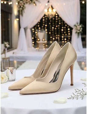 Elfenbensvita satinklackar för kvinnor - eleganta pumps med spetsiga tår och kristallutsmyckningar &Smal rem, sofistikerade skor för brudens mor för formella kyrkbröllop